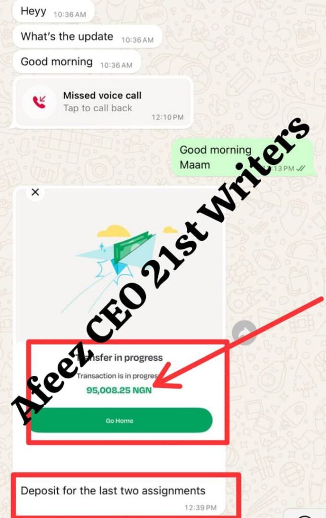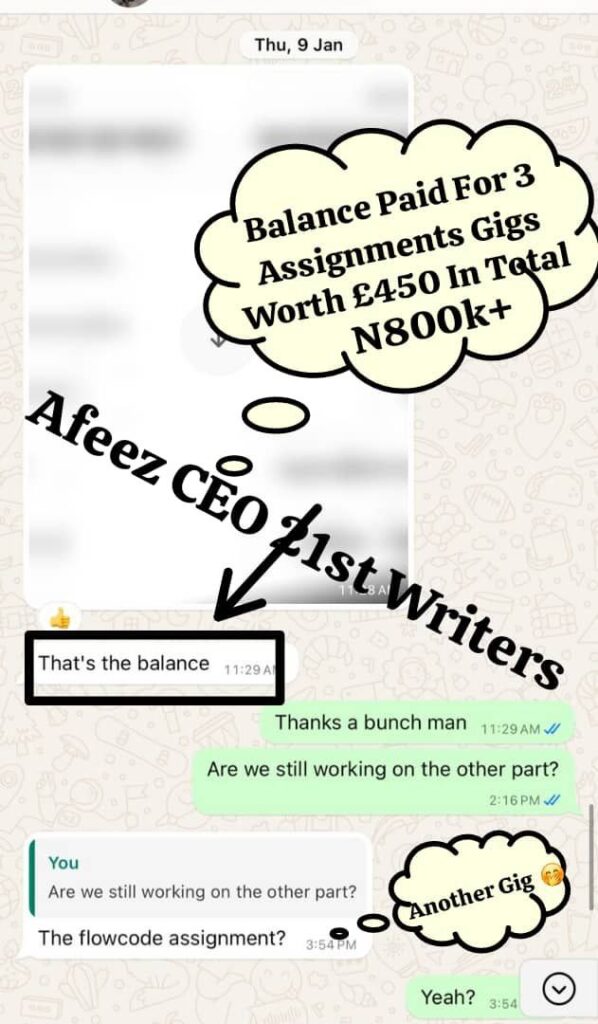 "As a student in Nigeria, I always enjoyed writing, but I didn’t know how to turn it into a source of income. After completing the "PAPER TO PAYCHECK COURSE", I learned how to write high-quality assignments and essays for international students. I’ve helped students from the UK, US, and other countries, and I now make enough to support myself and my family. The best part is that I can work from home, on my own schedule. This course didn’t just teach me how to write—it taught me how to build a business!"